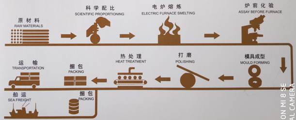 低鉻鑄球鑄段以其廣泛的原材料、簡單是生產設備和工藝、低廉的價格被很多用球單位青睞,尤其在國內使用量較大。低鉻鑄球原材料采用廢鐵絲廢鋼等,幾乎是所有鋼球里原材料最便宜的,電爐融化并添加1—3%的鉻合金,澆鑄在兩個扣一起的半球模具中冷卻成型,在經過打磨后即可檢驗上市,甚至無需專門的熱處理。