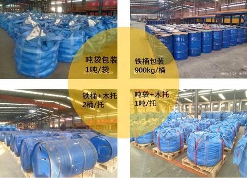 一般采用4種包裝方式,噸袋、鐵桶、噸袋+木托、鐵桶+木托。
